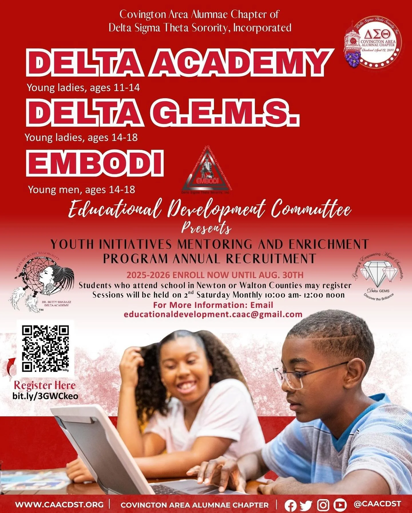 Join the movement; become an agent of change by partnering with CAAC on this journey of expansion and greater impact in Newton and Walton Counties. Explore our official website and follow us on our social media platforms for opportunities to partner and support Covington Area Alumnae Chapter of Delta Sigma Theta Sorority, Inc. programs and events. Enjoy your visit to our online home and please land again!